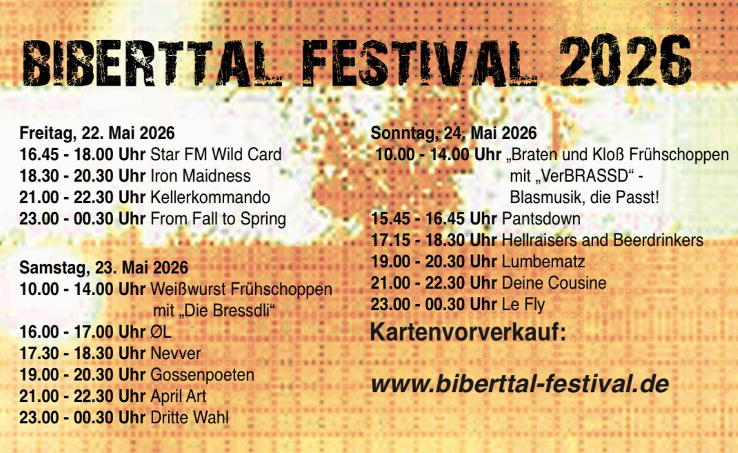 ‼️‼️‼️ Spielplan fürs Biberttal Festival 2026 steht…‼️‼️‼️Hier ist deine Running Order fürs Pfingstwochenende zum Download/Ausdrucken🤘 2020-01-09
